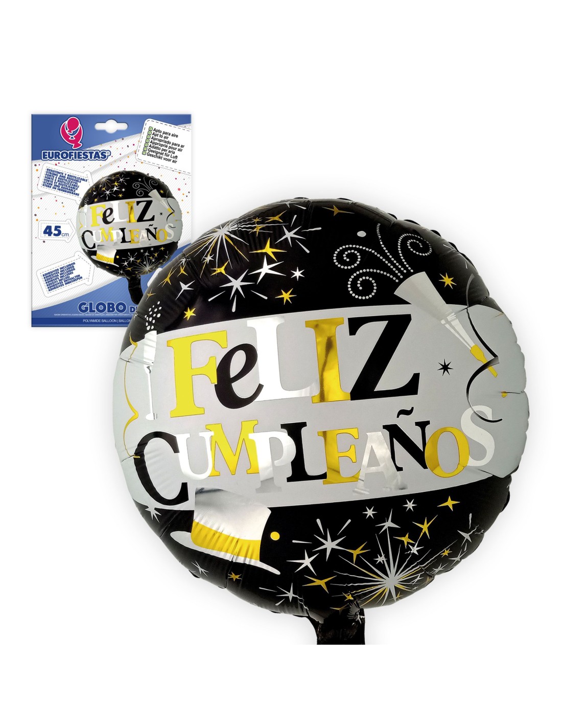 Globo Feliz Cumple Negro oro 45cm